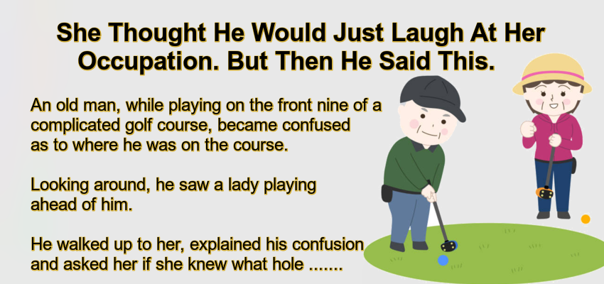 He thanked her and went back to his golf. On the back nine, the same thing happened; and he approached her again with the same request.