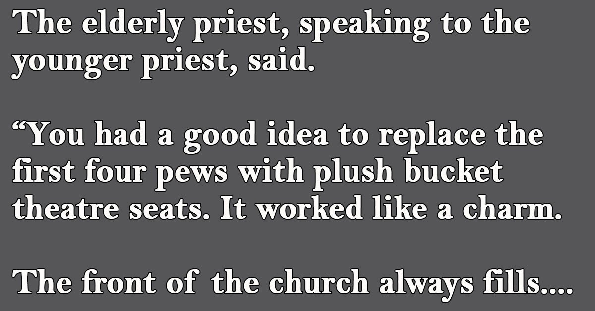“You had a good idea to replace the first four pews with plush bucket theatre seats. It worked like a charm. The front of the church always fills first now.”