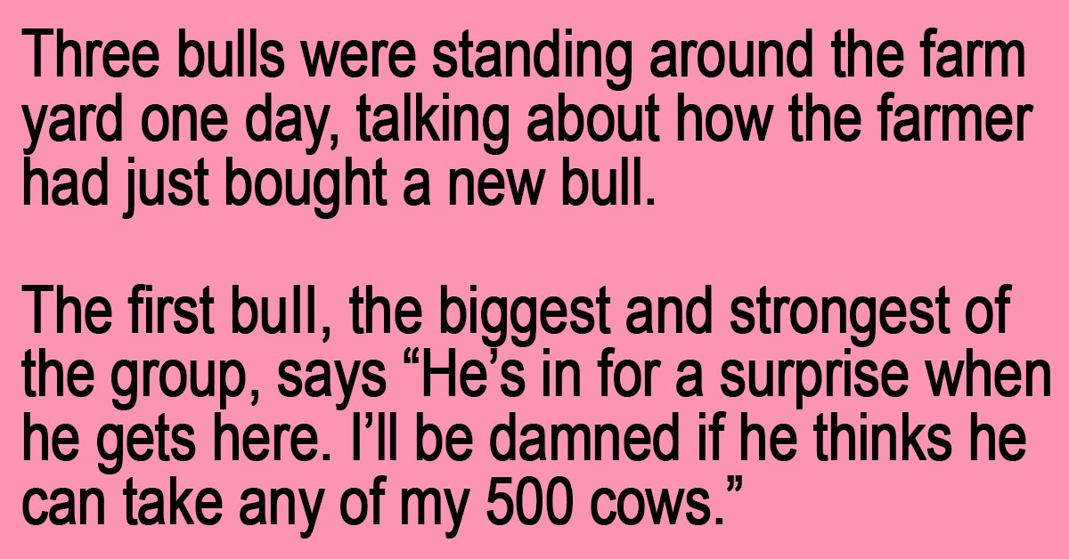 Three bulls were standing around the farm yard one day, talking about how the farmer had just bought a new bull.