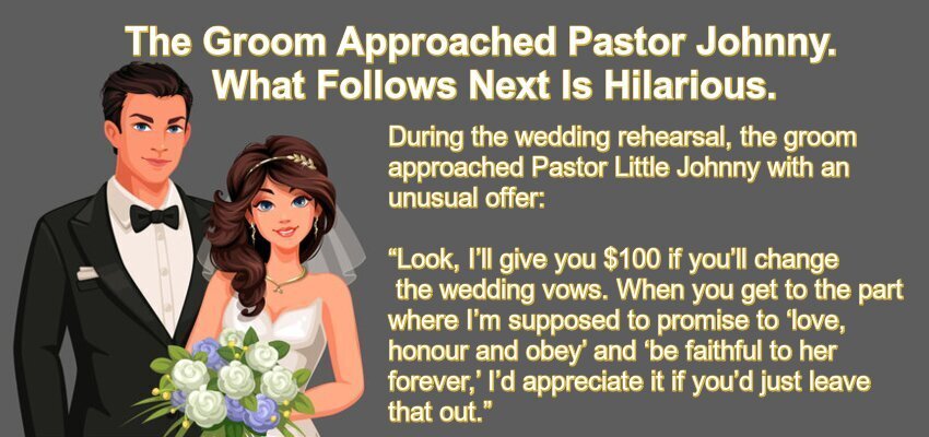 On the day of the wedding, when it came time for the groom’s vows, Little Johnny the Pastor looked the young man in the eye and said: