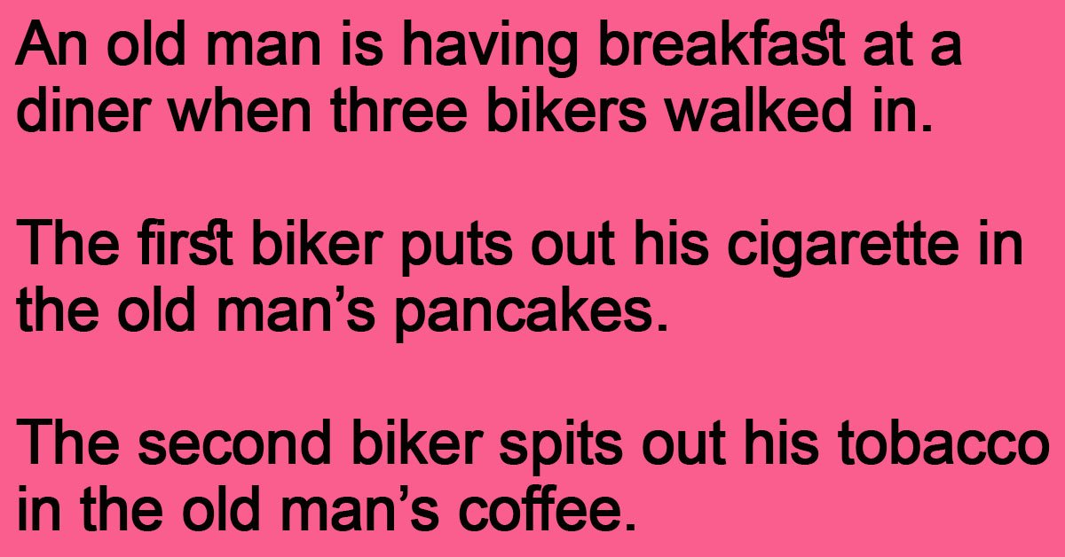 An old man is having breakfast at a diner when three bikers walked in.