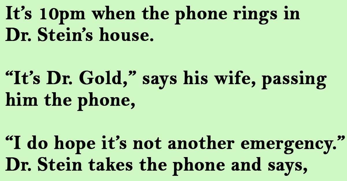 It’s 10pm when the phone rings in Dr. Stein’s house.