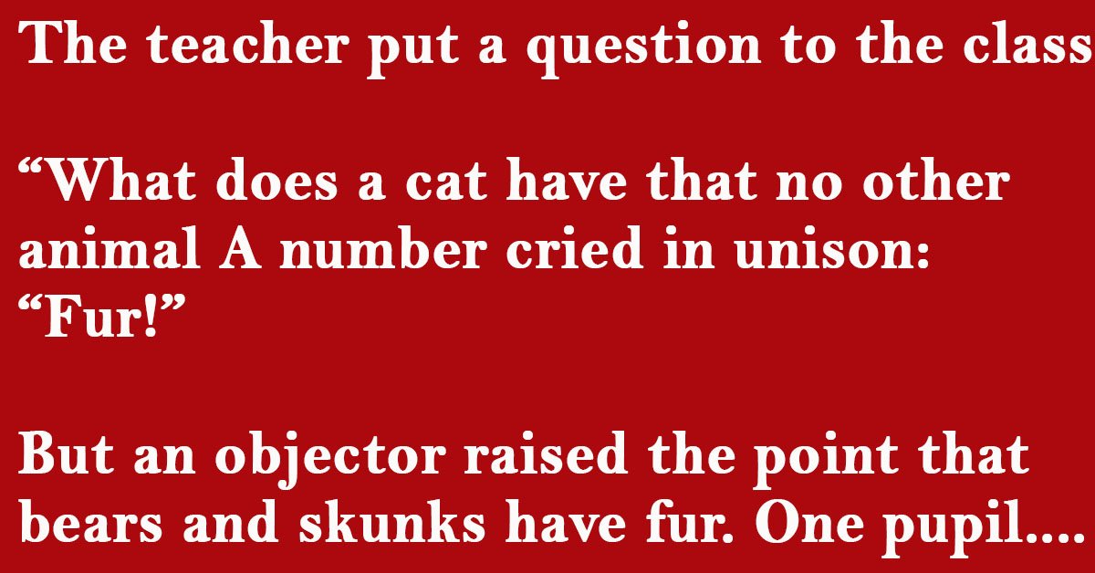 But an objector raised the point that bears and skunks have fur. One pupil raised an eager hand: