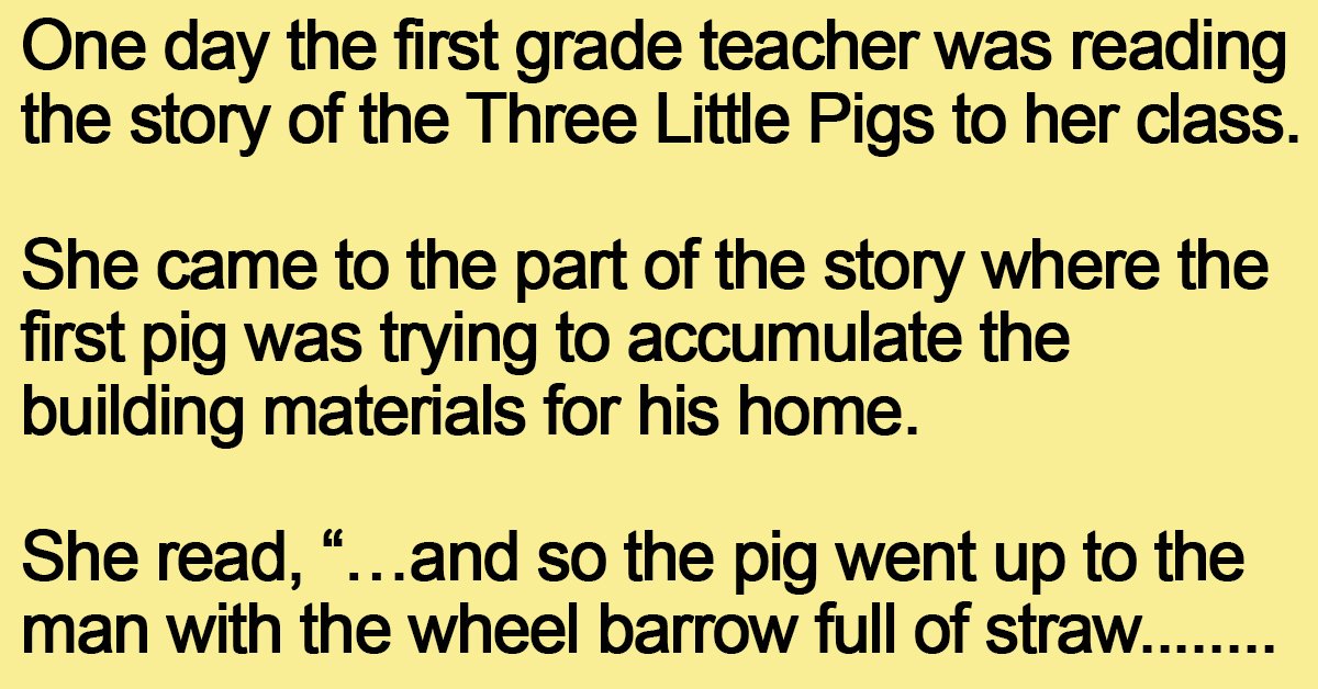 One day the first grade teacher was reading the story of the Three Little Pigs to her class.