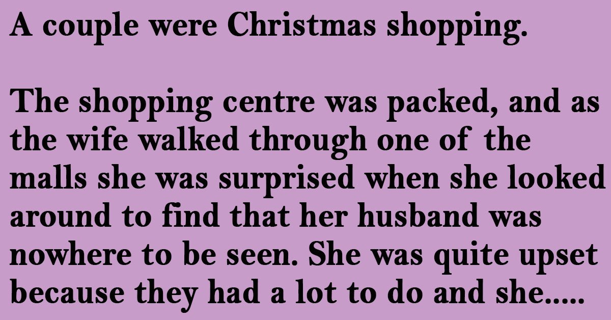 The shopping centre was packed, and as the wife walked through one of the malls she was surprised when she looked around to find that her husband was nowhere to be seen.