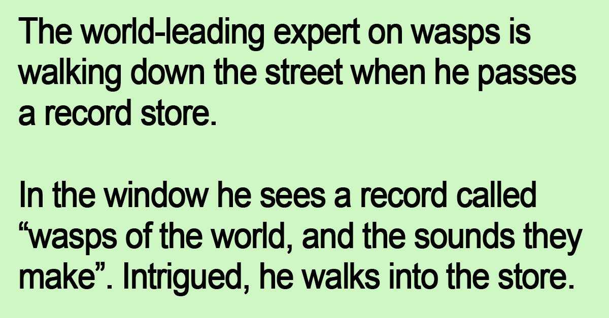 The world-leading expert on wasps is walking down the street when he passes a record store.