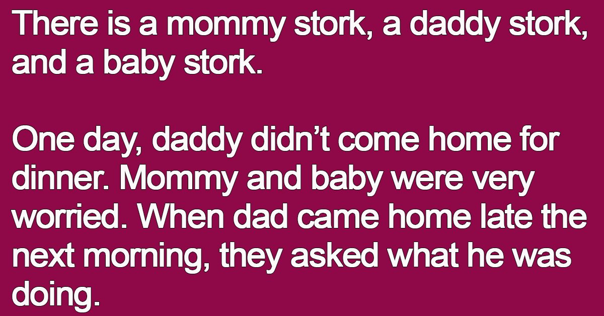 There Is A Mommy Stork, A Daddy Stork, And A Baby Stork.