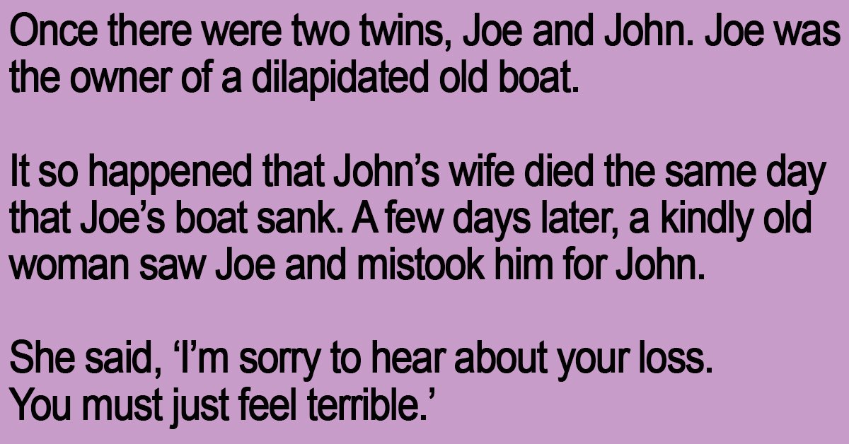 It so happened that John’s wife died the same day that Joe’s boat sank.