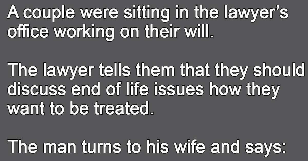 The lawyer tells them that they should discuss end of life issues how they want to be treated.
