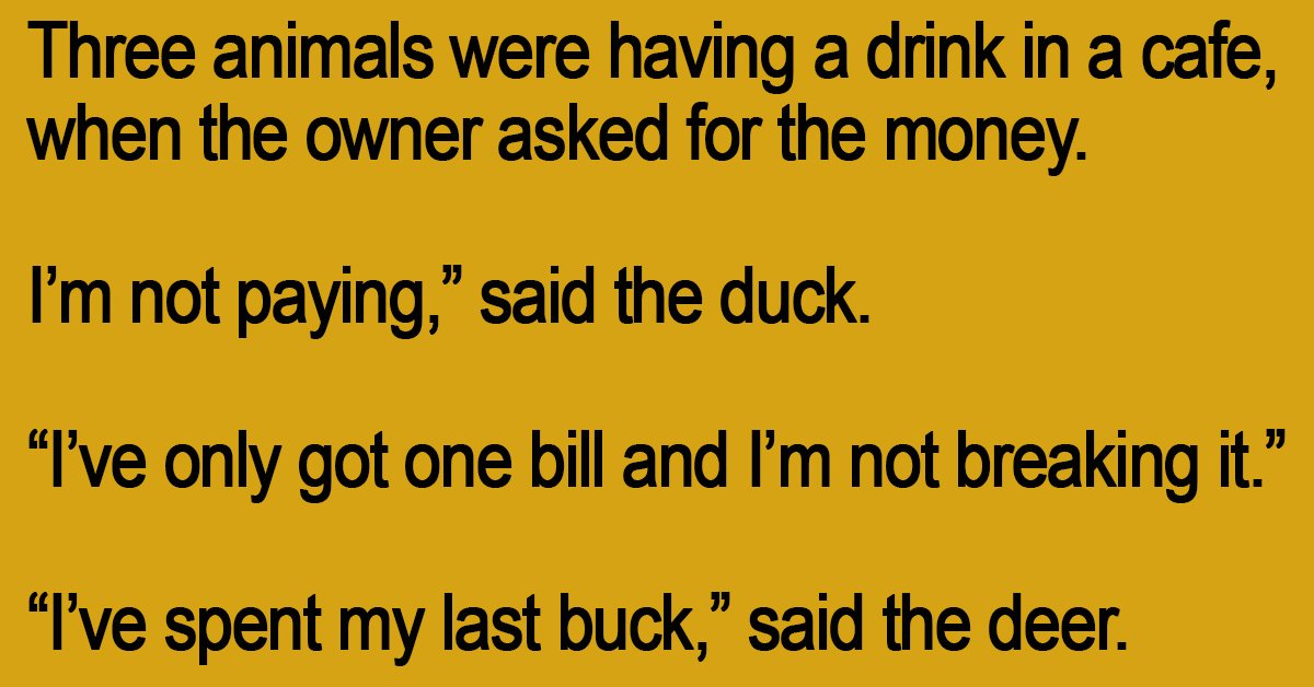 Three animals were having a drink in a cafe, when the owner asked for the money.