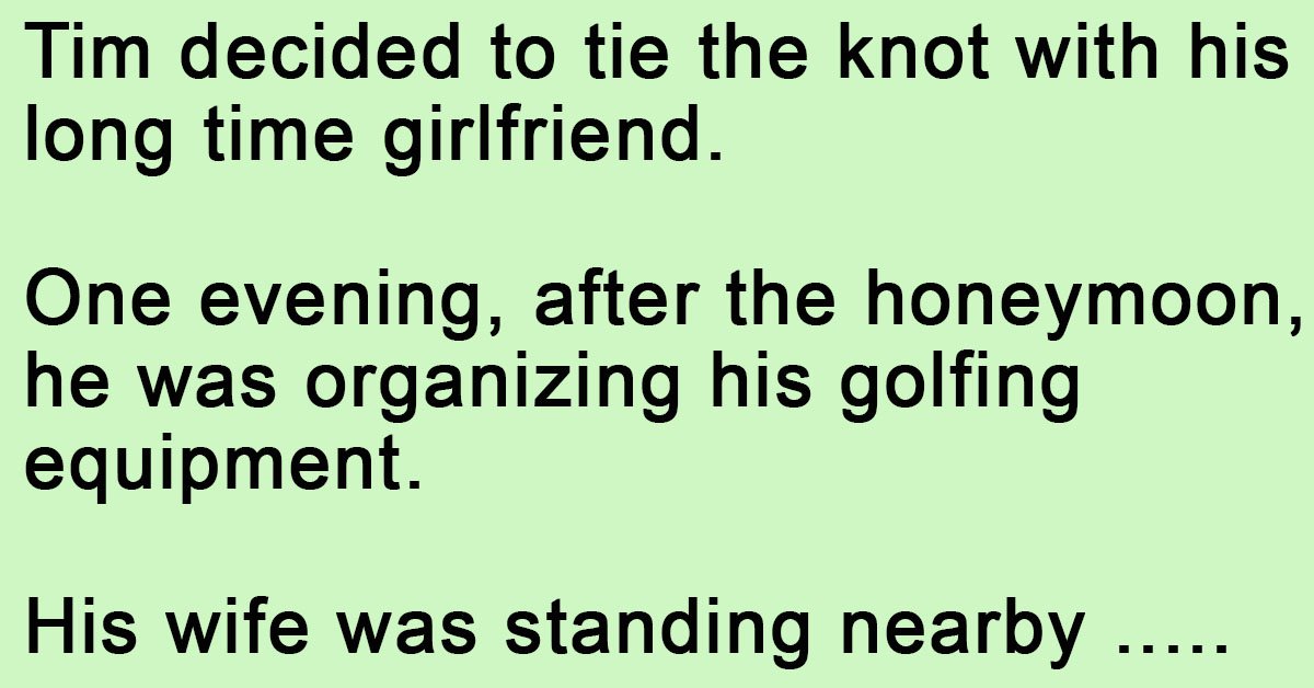 One evening, after the honeymoon, he was organizing his golfing equipment.