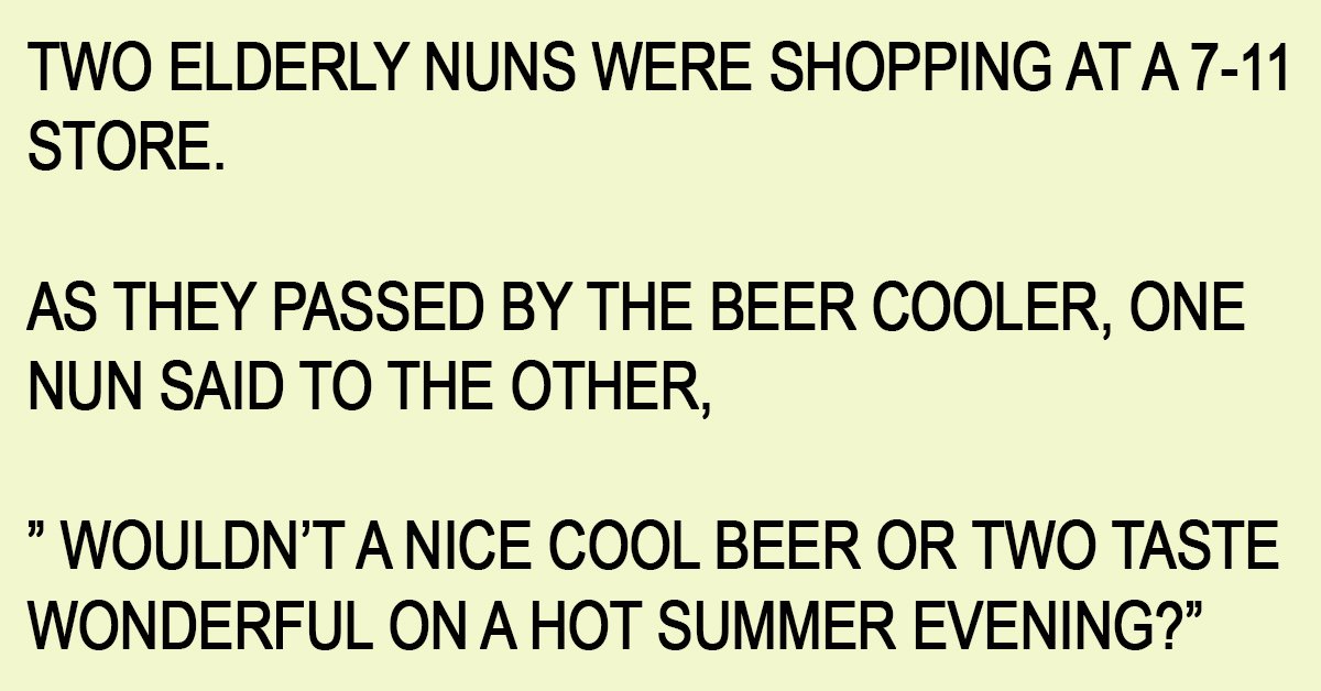 THE OTHER NUN REPLIED, AND SHE PICKED UP A SIX-PACK AND HEADED FOR THE CHECK-OUT.