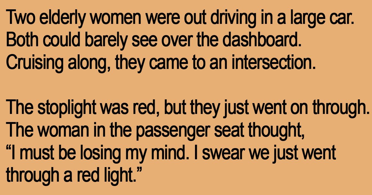 “I must be losing my mind. I swear we just went through a red light.”