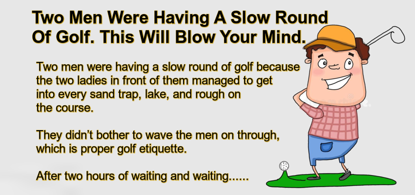 Two men were having a slow round of golf because the two ladies in front of them managed to get into every sand trap, lake, and rough on the course.
