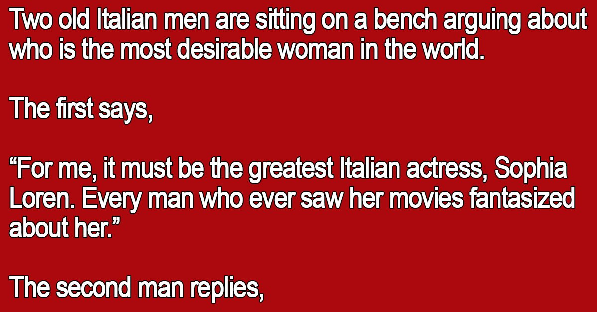 Two old Italian men are sitting on a bench arguing about who is the most desirable woman in the world.