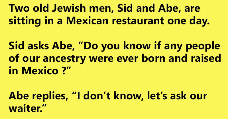 Two old Jewish men, Sid and Abe, are sitting in a Mexican restaurant one day.