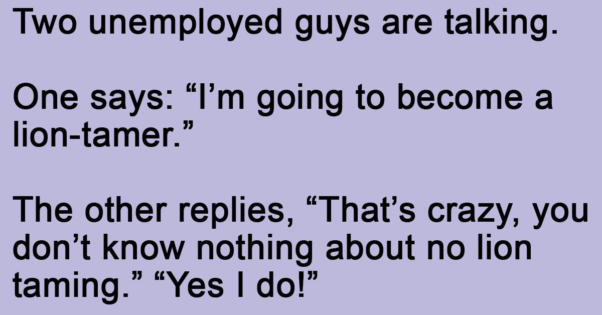The other replies, “That’s crazy, you don’t know nothing about no lion taming.”