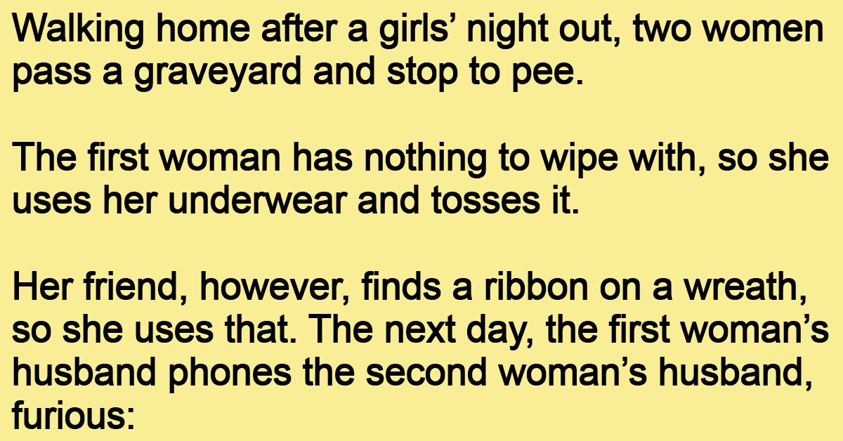 The next day, the first woman’s husband phones the second woman’s husband, furious: