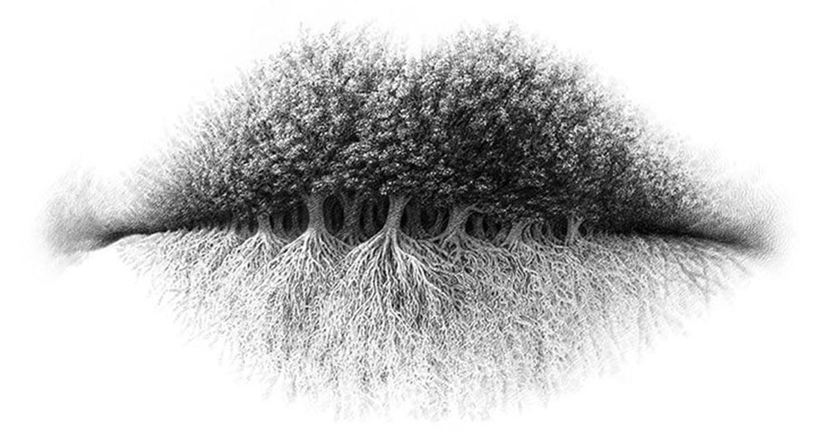 Look at the picture below and note what is the first thing you see in it. Do you first see trees, roots or lips?