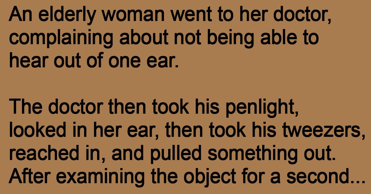 An elderly woman went to her doctor, complaining about not being able to hear out of one ear.