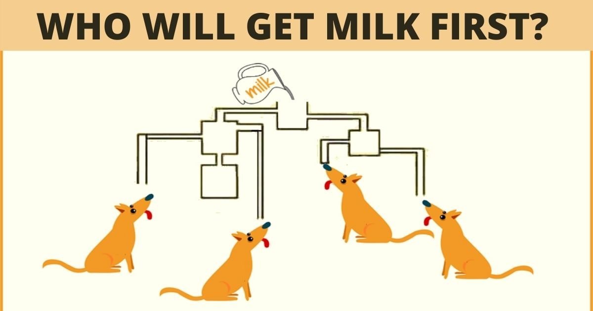 As for the answer to this picture puzzle, it is NONE. None of the dogs in the picture will get any milk this time because all of the pipes are blocked at some point!