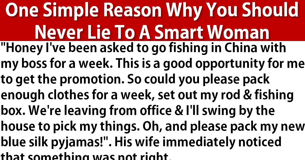 Man on phone: “Honey I’ve been asked to go fishing in China with my boss for a week. This is a good opportunity for me to get the promotion. So could you please pack enough clothes for a week, set out my rod & fishing box. We’re leaving from office & I’ll swing by the house to pick my things. Oh, Please pack my new blue silk pyjamas!”