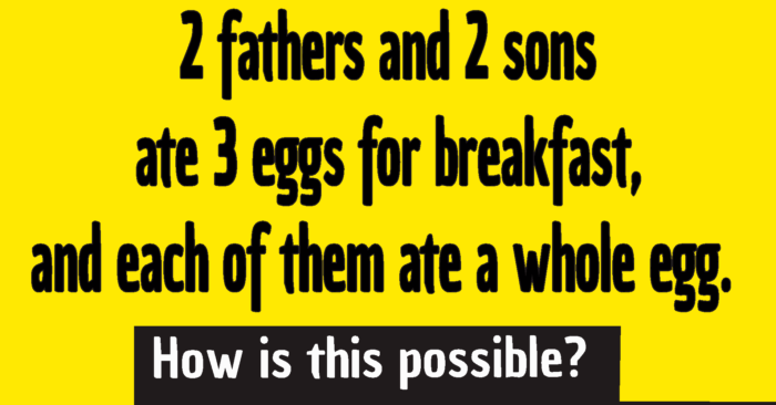 Ever since this riddle “2 fathers and 2 sons ate 3 eggs for breakfast” appeared online, many have tried to answer it and only few have been able to get its answer right.