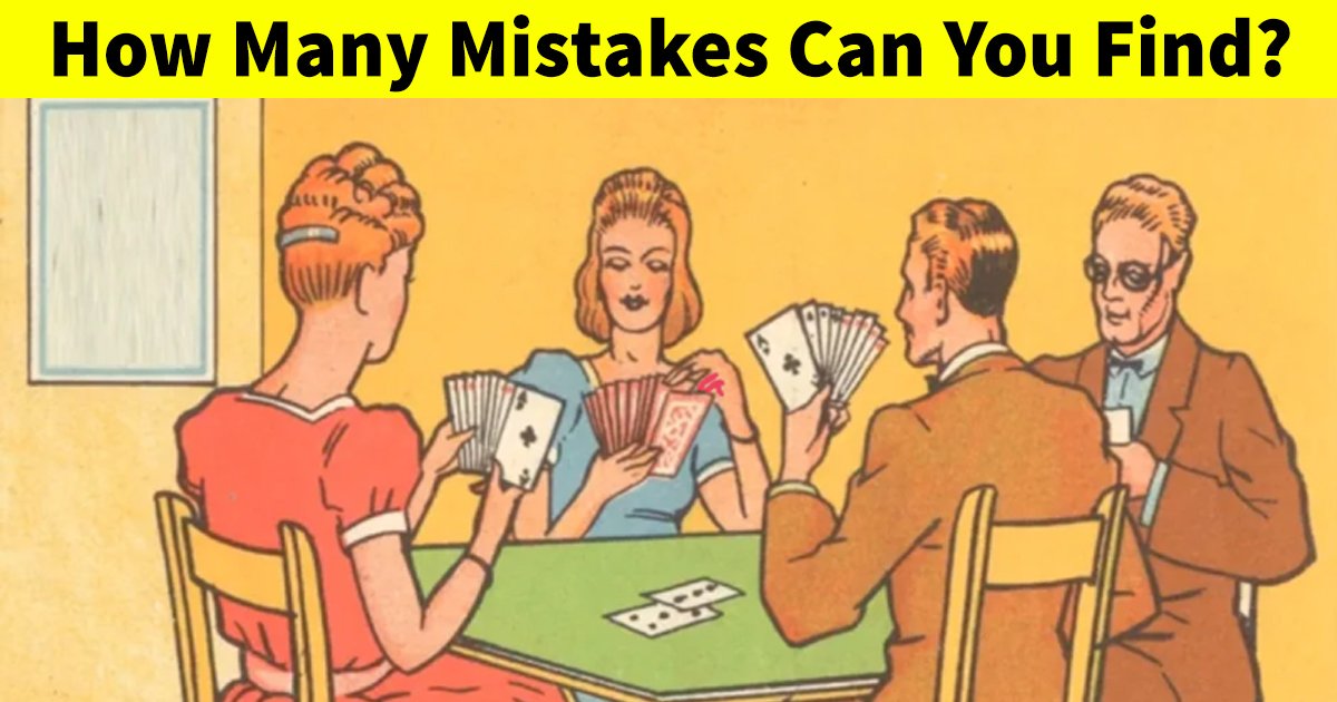 Here is a puzzling picture that features two couples busy playing an intriguing game of cards. Hence, we feel that if you’re a true card game lover, you’ll definitely see the error. Even if you’re not, this is a test for the observant. So, please solve away!