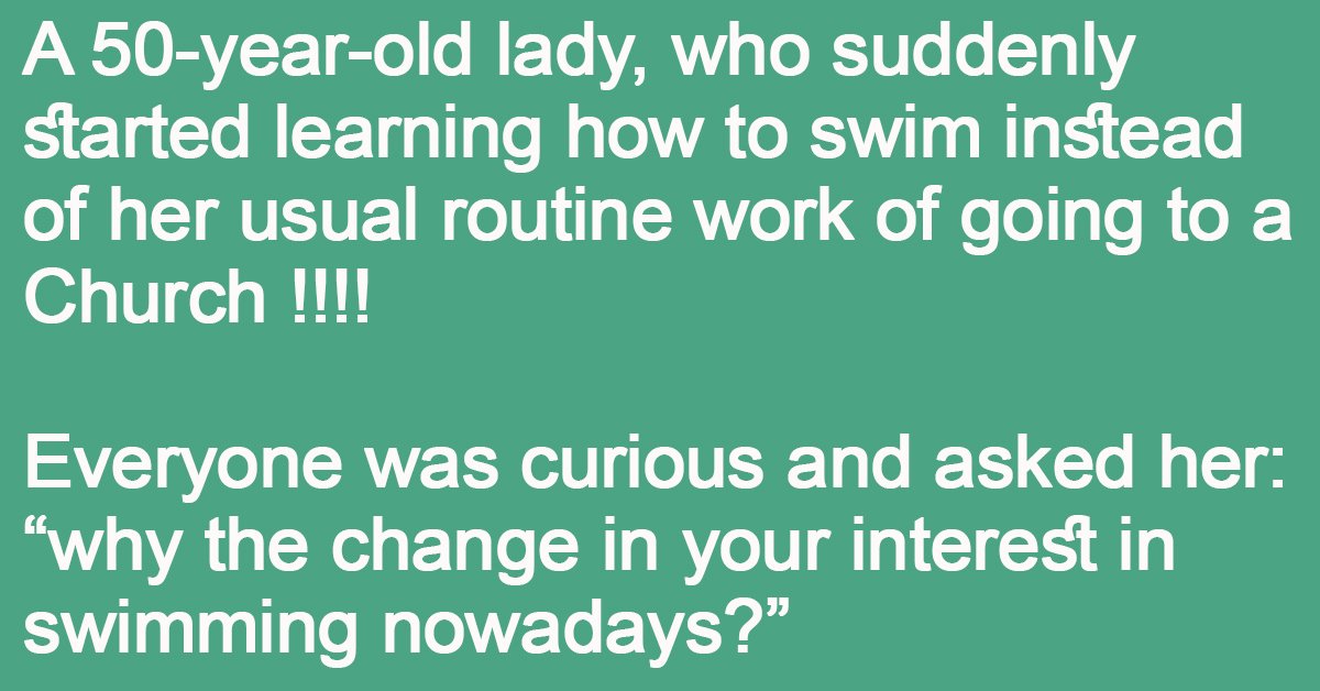 A 50-year-old lady, who suddenly started learning how to swim instead of her usual routine work of going to a Church !!!!