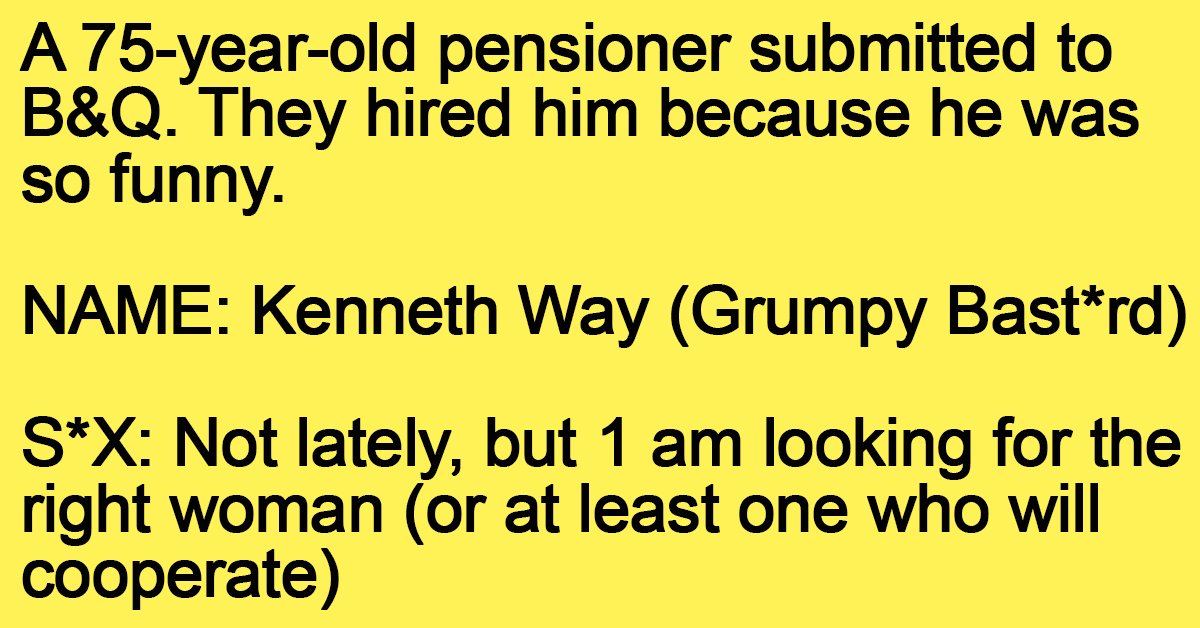 NAME: Kenneth Way (Grumpy Bast*rd)