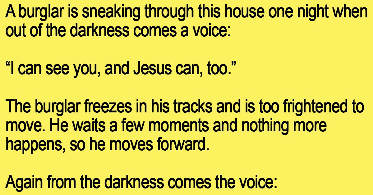 A burglar is sneaking through this house one night when out of the darkness comes a voice: