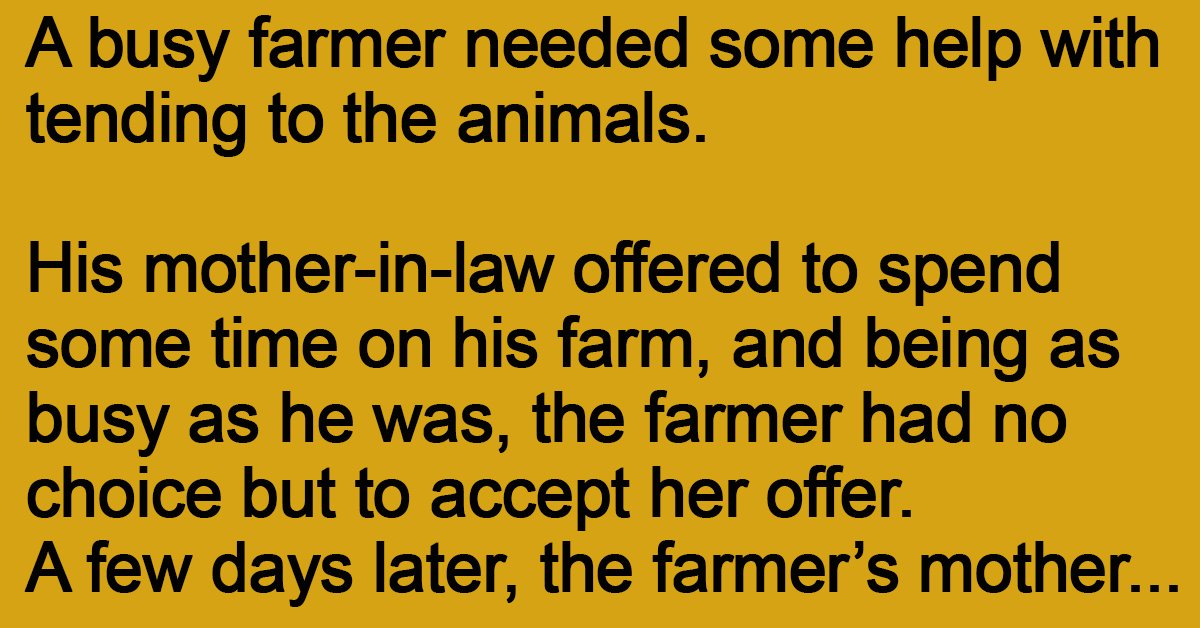 His mother-in-law offered to spend some time on his farm, and being as busy as he was, the farmer had no choice but to accept her offer.