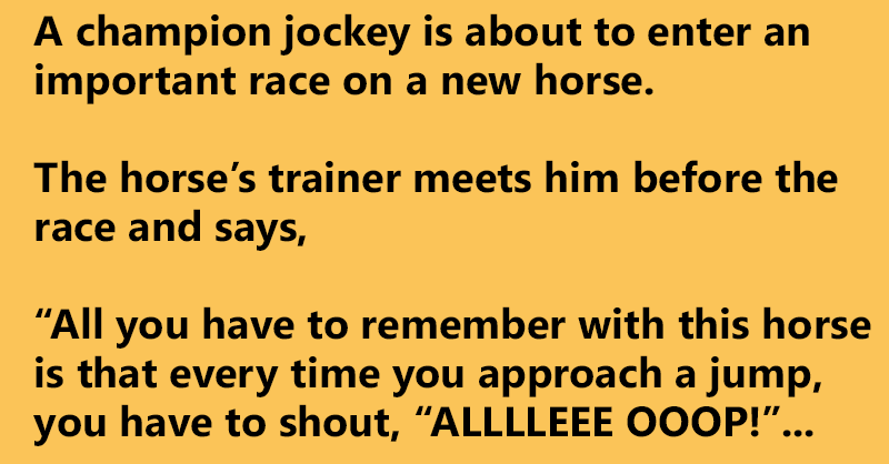 The jockey thinks the trainer is mad but promises to shout the command.