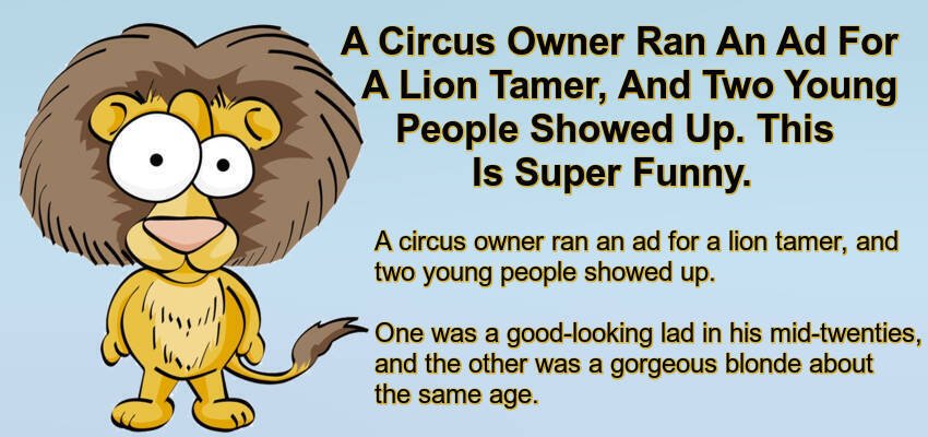 A circus owner ran an ad for a lion tamer, and two young people showed up.