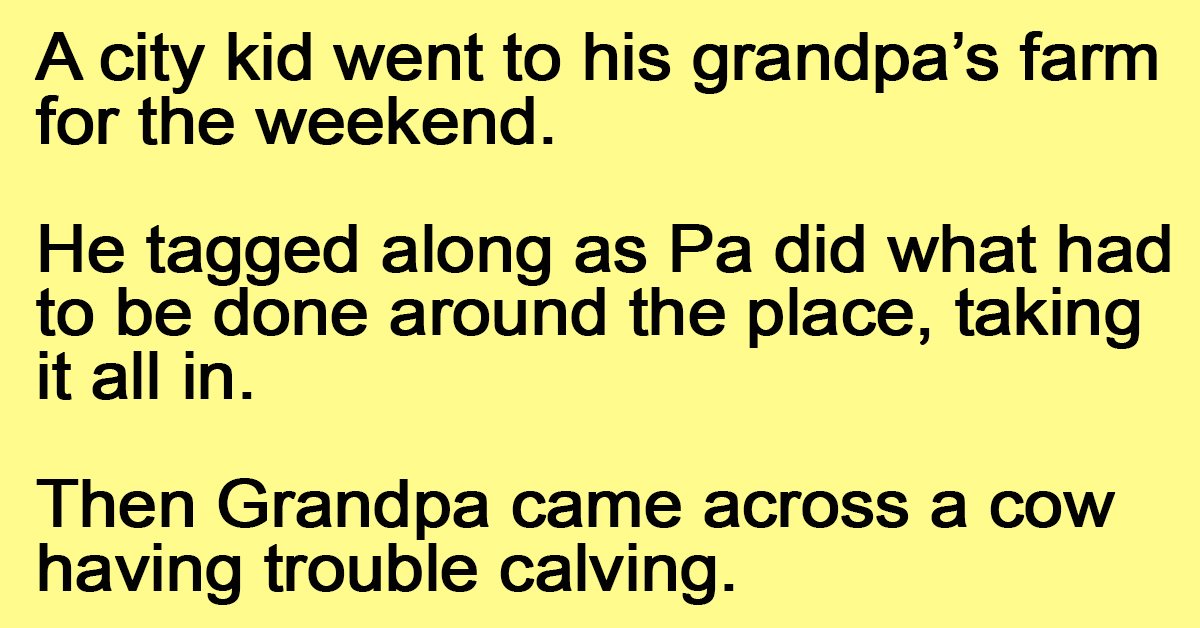 Then Grandpa came across a cow having trouble calving.