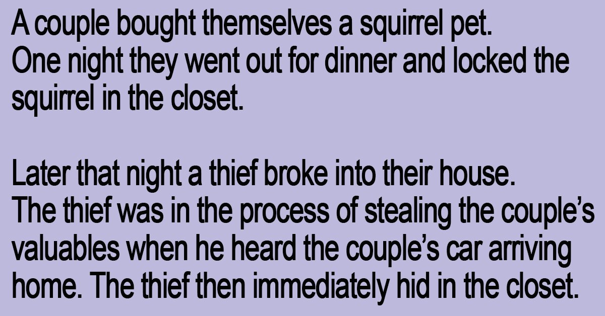 One night they went out for dinner and locked the squirrel in the closet.