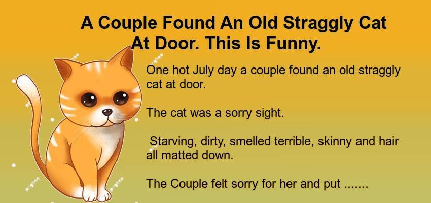 A Couple Found An Old Straggly Cat At Door. – May 6, 2022 by Kevin Adams Facebook Twitter Pinterest LinkedIn One hot July day a couple found an old straggly cat at door. The cat was a sorry sight. Starving, dirty, smelled terrible, skinny and hair all matted down. The Couple felt sorry for her and put her in a carrier and took her to the vet. She had no name so the couple named her Pus$ycat. The vet decided to keep her for a day or so and said he would let us know when they could come and get her. The husband, [the complainer] said, “OK, but don’t forget to wash her, she stinks.” The husband and vet don’t like each other. He calls the husband El-cheap-O and husband calls him El-Take-0. They love to hate each other. The next day husband had an appointment with his doctor, which was located next door to the vet. The doctor’s office was full of people waiting to see the doctor. A side door opened and in leaned the vet; he had obviously seen the husband arrive. He looked straight at the husband, “Your wife’s pus$y is finally clean and shaved. She now smells like a rose. And by the way, I think she’s pregnant. God knows who the father is!” And he closed the door. Facebook Twitter Pinterest LinkedIn