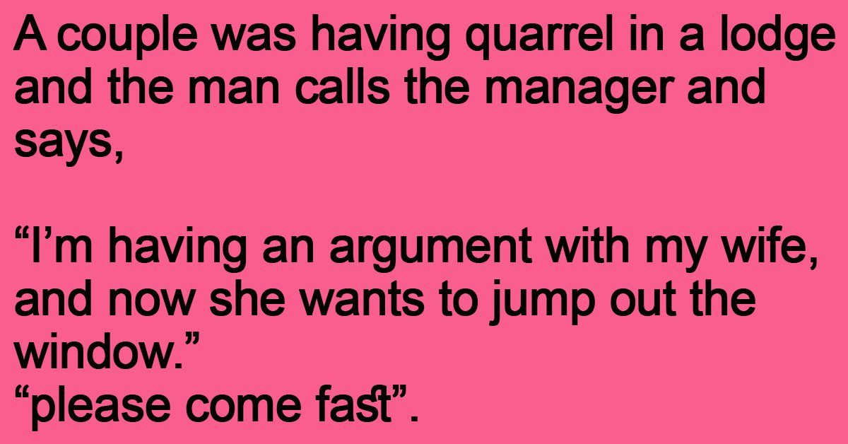 “I’m having an argument with my wife, and now she wants to jump out the window.”