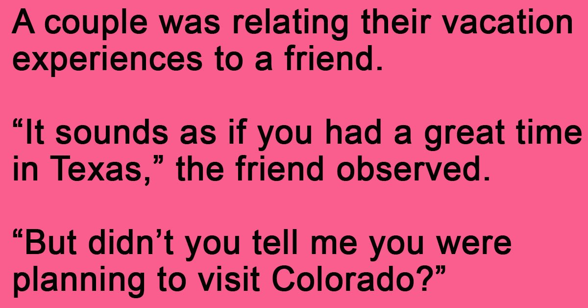 “It sounds as if you had a great time in Texas,” the friend observed.