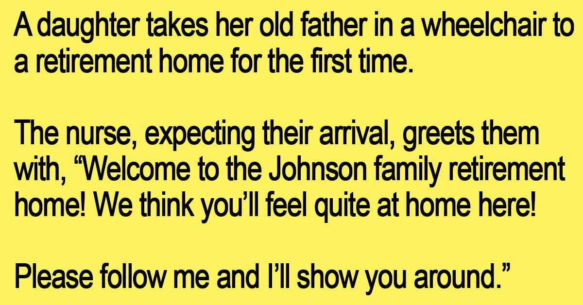 “Welcome to the Johnson family retirement home! We think you’ll feel quite at home here! Please follow me and I’ll show you around.”