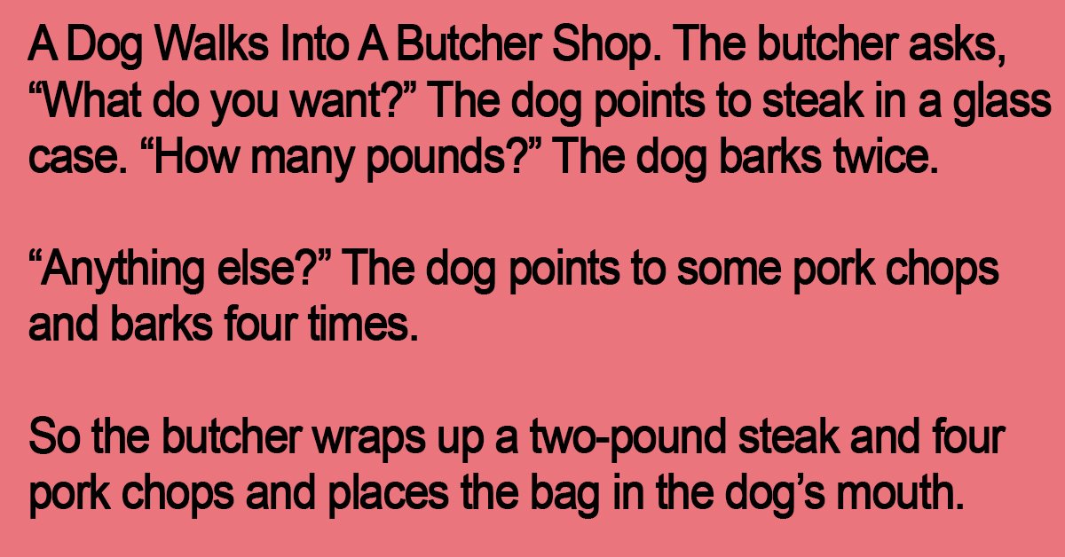 A Dog Walks Into A Butcher Shop.