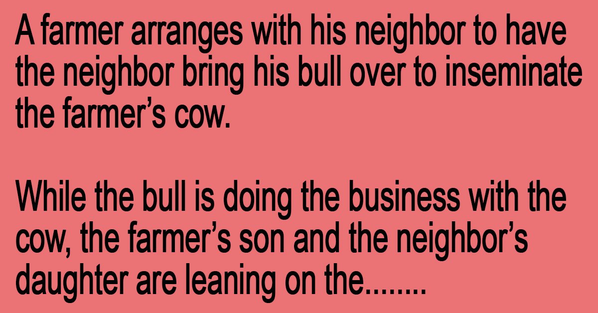 The farmer’s son nudges the neighbor’s daughter, winks and says to her,