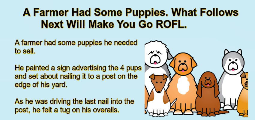 A Farmer Had Some Puppies. – May 7, 2022 by Kevin Adams Facebook Twitter Pinterest LinkedIn A farmer had some puppies he needed to sell. He painted a sign advertising the 4 pups and set about nailing it to a post on the edge of his yard. As he was driving the last nail into the post, he felt a tug on his overalls. He looked down into the eyes of a little boy. “Mister,” he said, “I want to buy one of your puppies.” “Well,” said the farmer, as he rubbed the sweat off the back of his neck, “These puppies come from fine parents and cost a good deal of money.” The boy dropped his head for a moment. Then reaching deep into his pocket, he pulled out a handful of change and held it up to the farmer. “I’ve got thirty-nine cents. Is that enough to take a look?” “Sure,” said the farmer. And with that, he let out a whistle. “Here, Dolly!” he called. Out from the doghouse and down the ramp ran Dolly followed by four little balls of fur. The little boy pressed his face against the chain-link fence. His eyes danced with delight. As the dogs made their way to the fence, the little boy noticed something else stirring inside the doghouse. Slowly another little ball appeared, this one noticeably smaller. Down the ramp, it slid. Then in a somewhat awkward manner, the little pup began hobbling toward the others, doing its best to catch up… “I want that one,” the little boy said, pointing to the runt. The farmer knelt down at the boy’s side and said, “Son, you don’t want that puppy. He will never be able to run and play with you as these other dogs would.” With that, the little boy stepped back from the fence, reached down, and began rolling up one leg of his trousers. In doing so he revealed a steel brace running down both sides of his leg attaching itself to a specially made shoe. Looking back up at the farmer, he said, “You see sir, I don’t run too well myself, and he will need someone who understands.” With tears in his eyes, the farmer reached down and picked up the little pup. Holding it carefully he handed it to the little boy. “How much?” asked the little boy… “No charge,” answered the farmer, “There’s no charge for love.” Facebook Twitter Pinterest LinkedIn