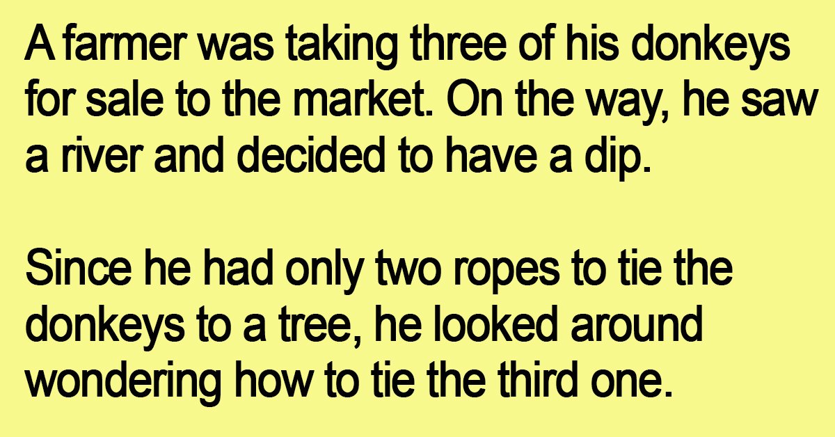 Since he had only two ropes to tie the donkeys to a tree, he looked around wondering how to tie the third one.