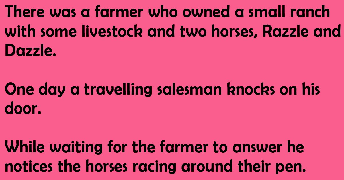 There was a farmer who owned a small ranch with some livestock and two horses, Razzle and Dazzle.