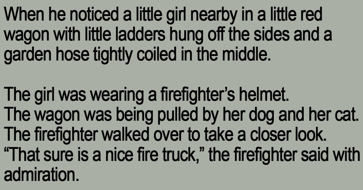 When he noticed a little girl nearby in a little red wagon with little ladders hung off the sides and a garden hose tightly coiled in the middle.