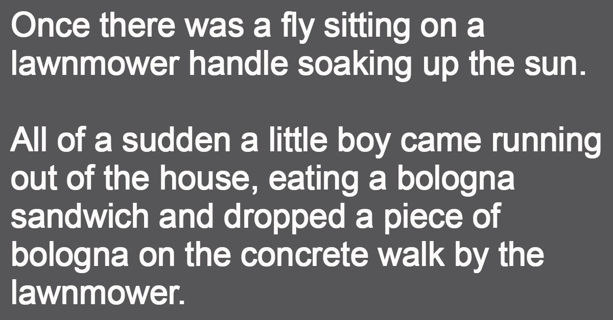 Once there was a fly sitting on a lawnmower handle soaking up the sun.