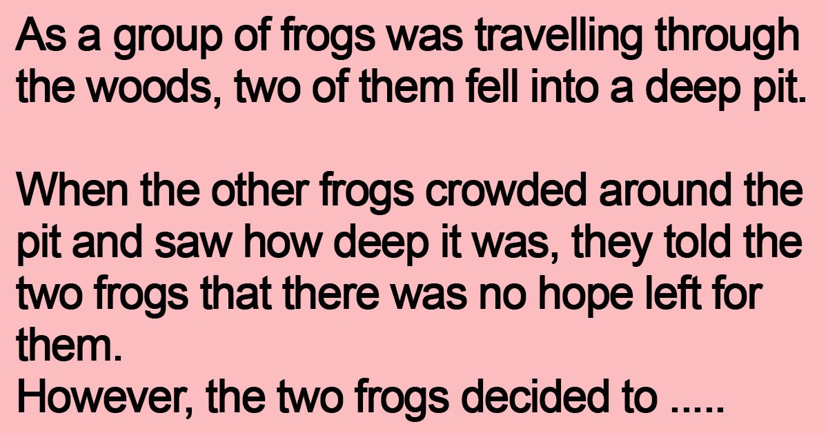 As a group of frogs was travelling through the woods, two of them fell into a deep pit.