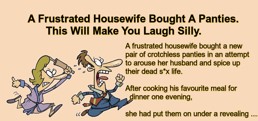 A frustrated housewife bought a new pair of crotchless panties in an attempt to arouse her husband and spice up their dead s*x life.