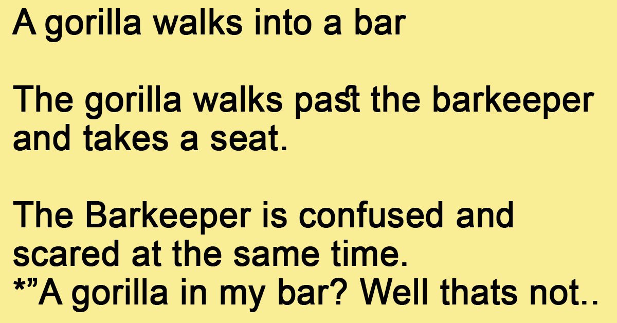 Then the gorilla stands up, goes to the bar and says